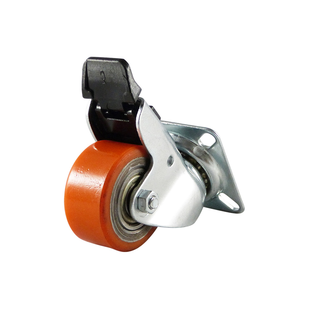 Apparate-Lenkrolle mit Bremse Ø35mm orange PU Bereifung - Anschraubplatte