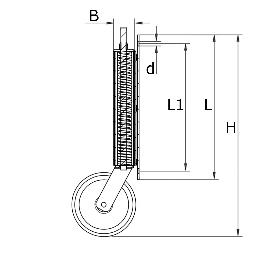 Torrolle gefedert 100mm schwarze Gummireifen - Bockrolle