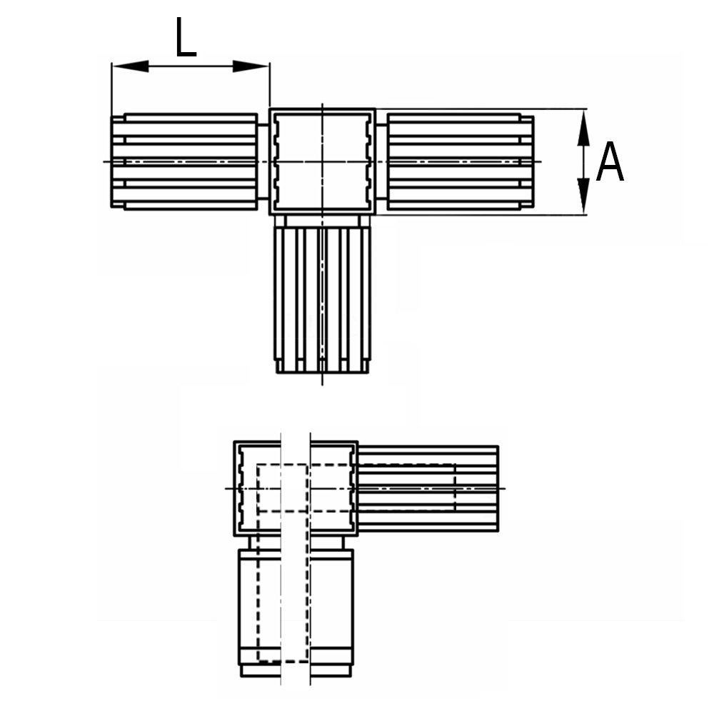 Steckverbinder PA 2-teilig 30x30x2,0 3D4 mit stahlkern