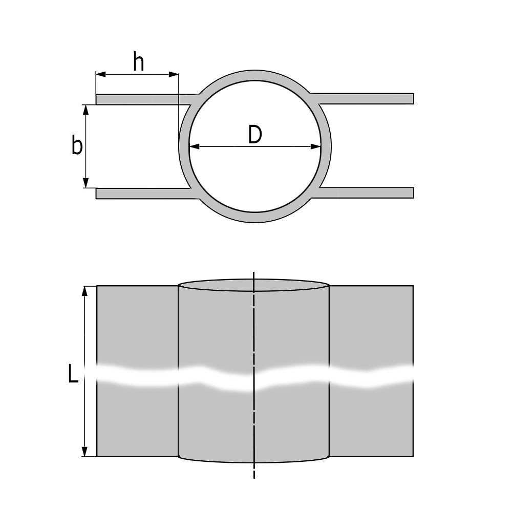 Ausf.=Offen oder einseitig geschlossen, D=Rohrmaß=Innen-Ø, b=Breite innen, h=Höhe innen, L=Länge