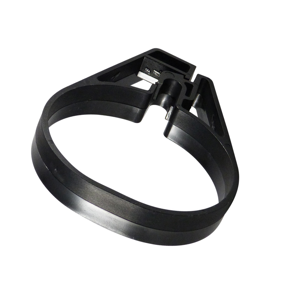 - Diese Schelle lässt sich einfach auf runde Zaunpfosten montieren und klemmt mit ein einfaches Klicksystem