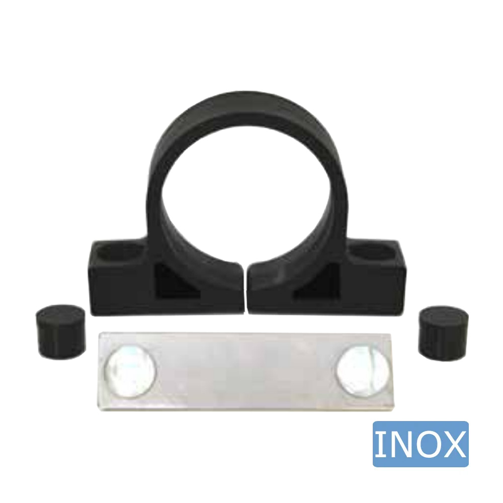 Kunststoff Zaunschellen Ø60mm mit Edelstahl Flacheisen Verschluß M6 - schwarz